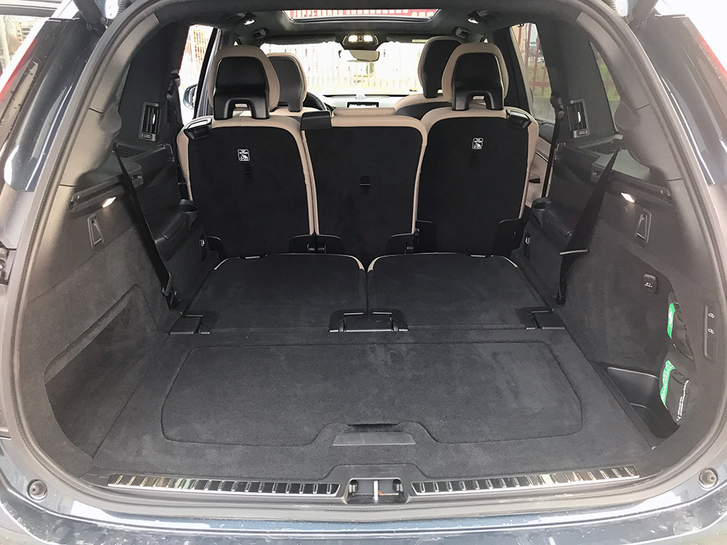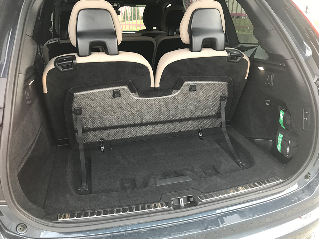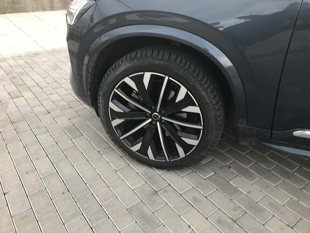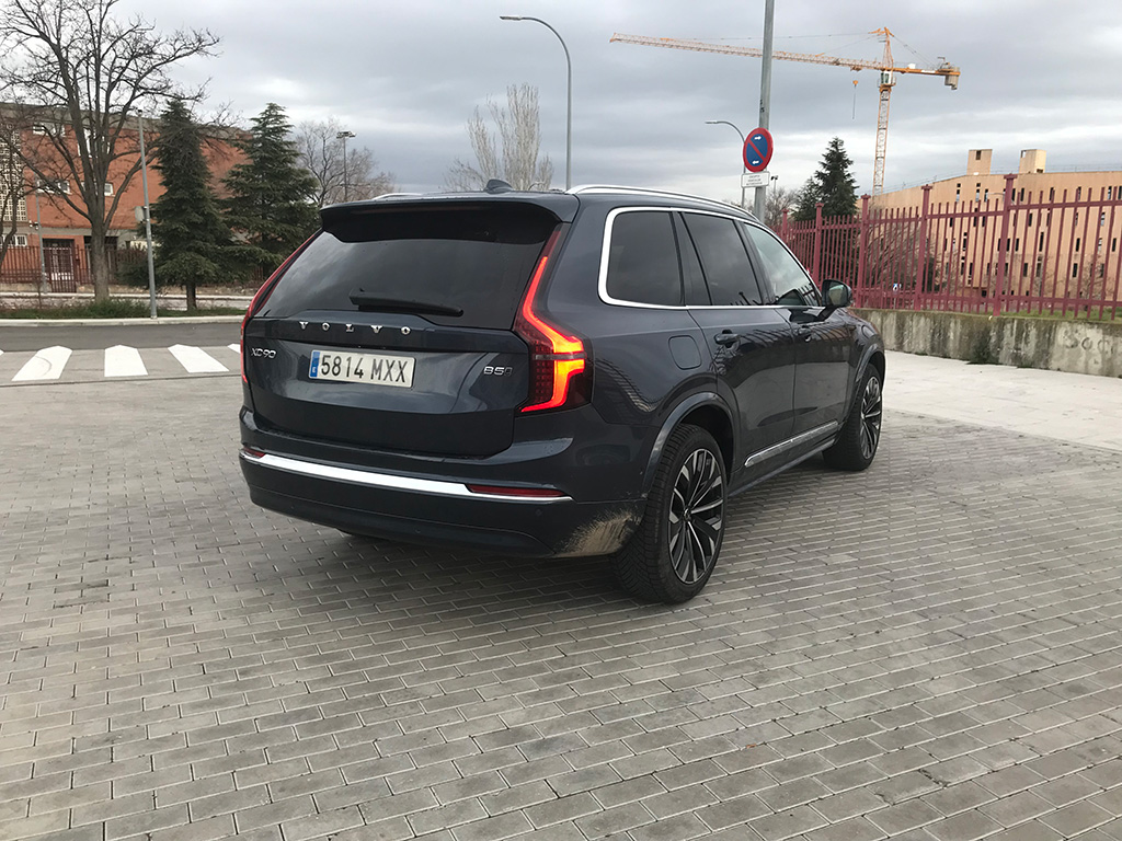 Llantas de hasta de 22” y una estética muy de todoterreno premium de amplias dimensiones; en la parte trasera, enormes pilotos verticales y las letras VOLVO en el centro del portón, de accionamiento eléctrico