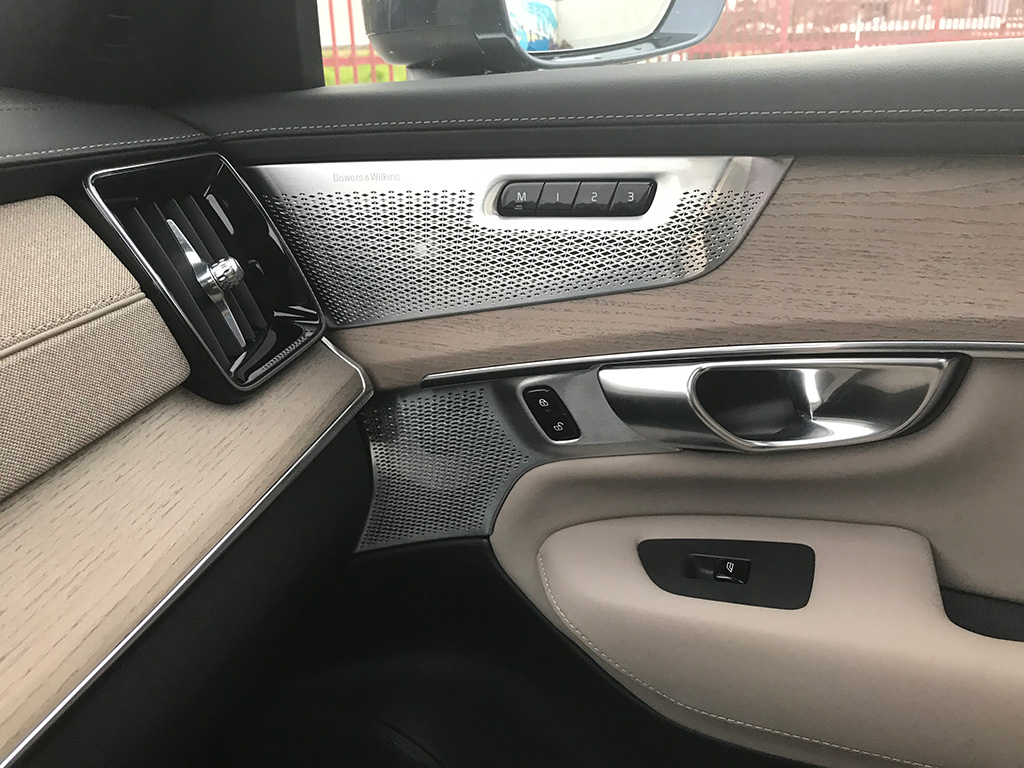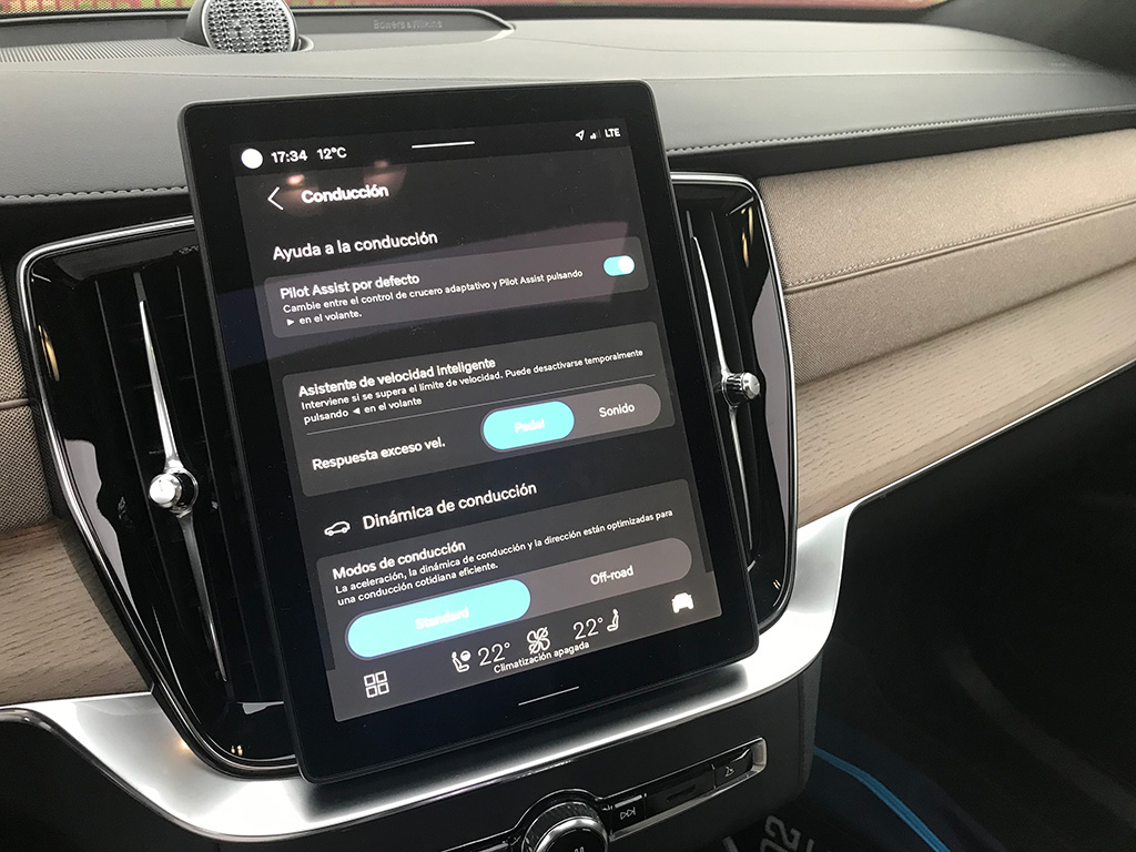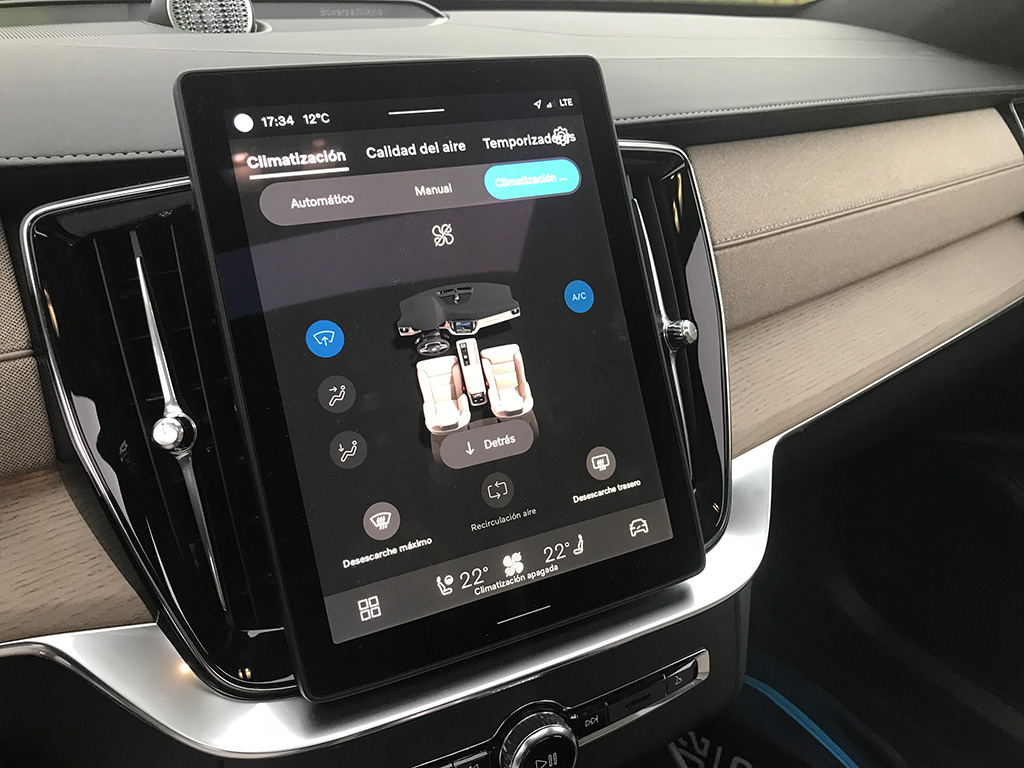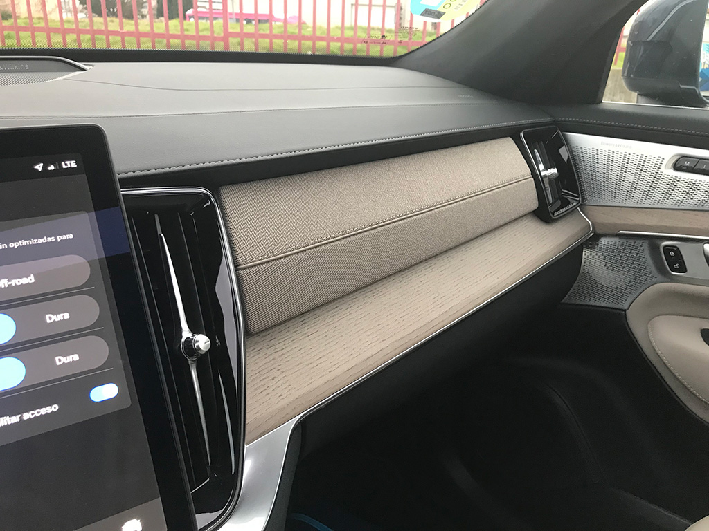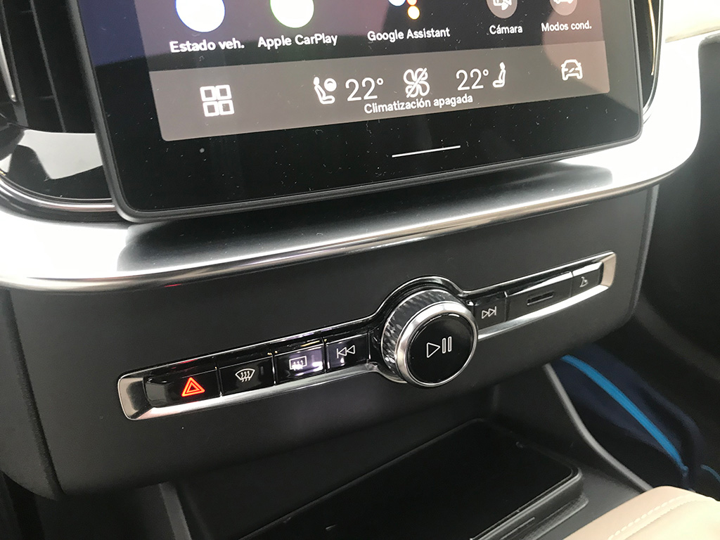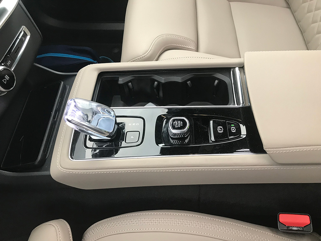 Entre ambos asientos, guantera de gran tamaño, otra más pequeña, una sutil palanca echa en cristal para el cambio y el mando giratorio de arranque y parada (diseño muy de Volvo). La insonorización del habitáculo es perfecta y además nuestra unidad venía con el excelente equipo de sonido Bowers & Wilkins de 1.400 W de acústica impresionante.