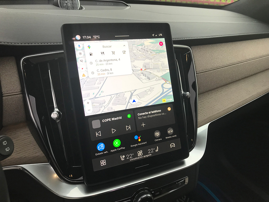 Destacar que Volvo incorpora la aplicación de Google a toda su gama de modelos y este. Google Maps se haya totalmente integrado y un control por voz manos libres que se puede utilizar con el Asistente Google, la información del tráfico en tiempo real y la variación automática de la ruta te permite llegar al destino fácilmente.