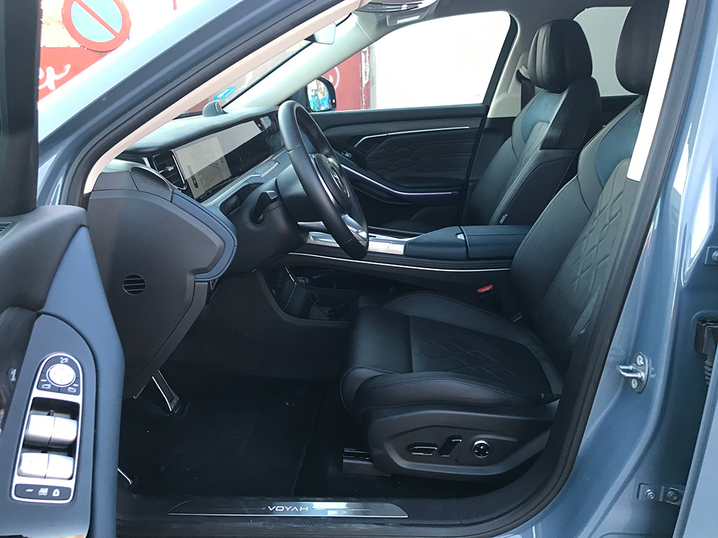 Es entrar en el interior del VOYAH FREE y nos invade una sensación muy Premium. Materiales acolchados, tapicerías de cuero sintético, plásticos con un tacto muy agradable, algo de black piano y terminaciones y costuras casi perfectas.