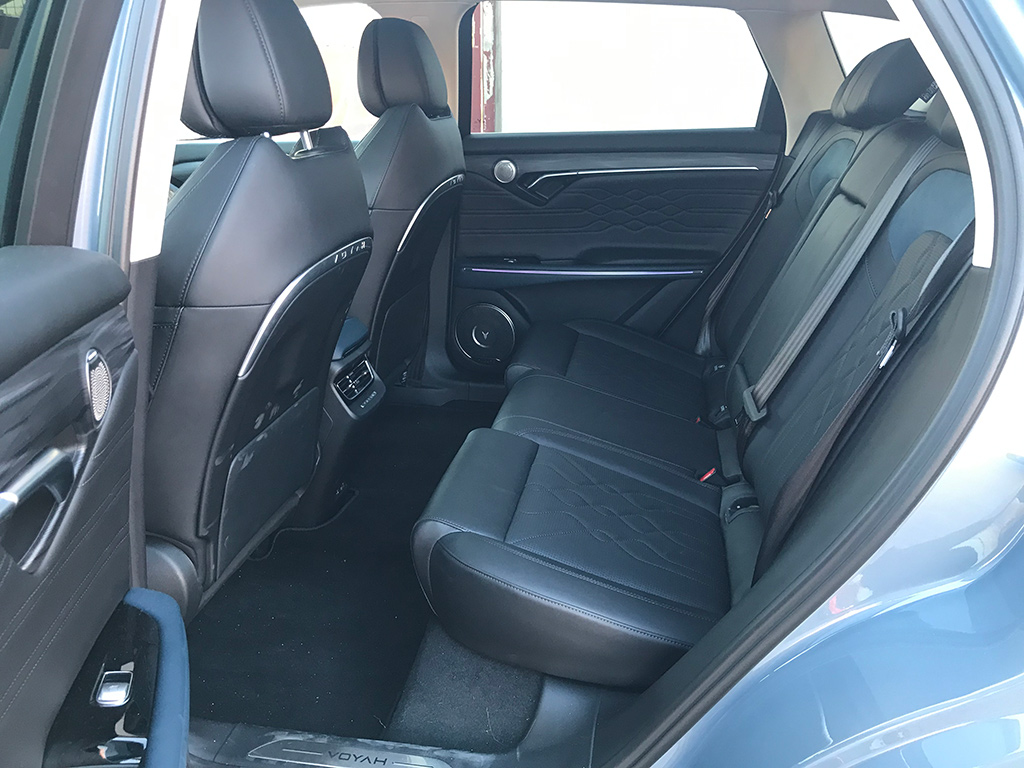 La segunda fila presenta un gran espacio para las rodillas, cabeza e incluso hombros. Los casi 3 metros de distancia entre ejes y la ausencia de un túnel de transmisión central facilitan mucho ese confort interior; eso sí, hecho en falta, la regulación de temperatura en la segunda fila.