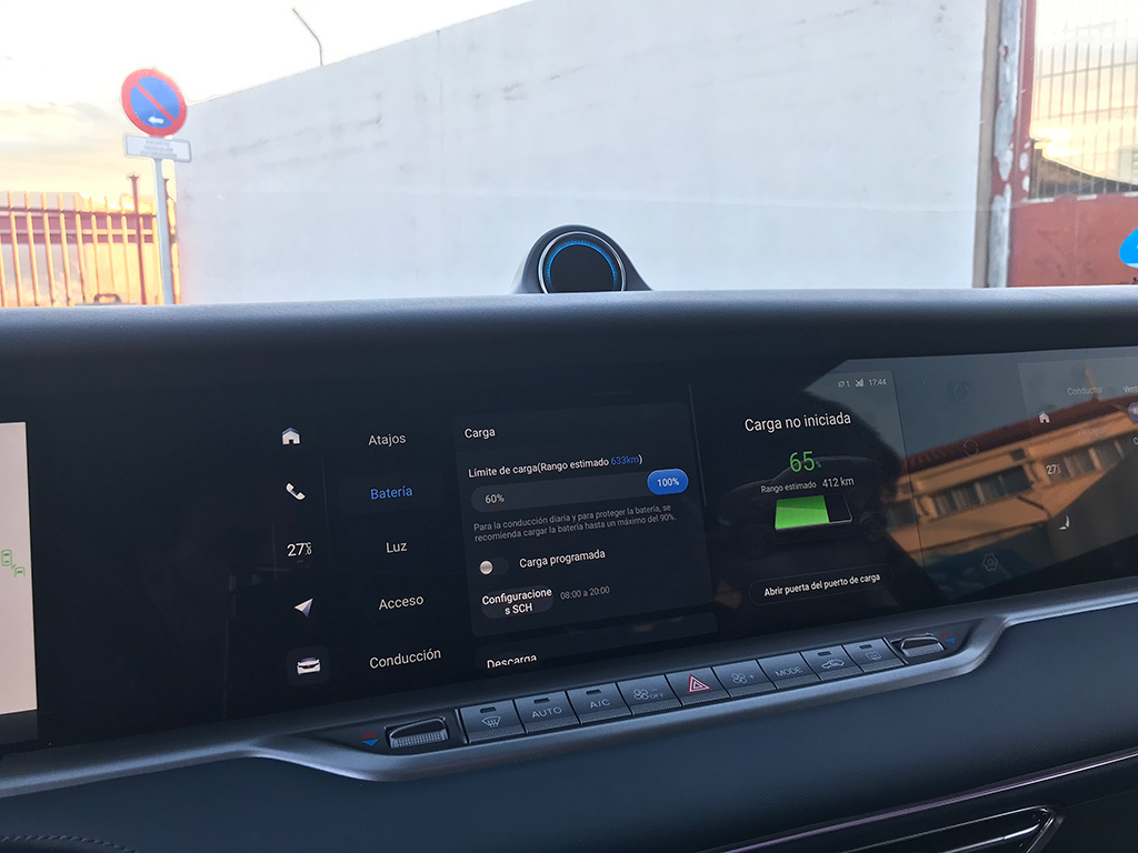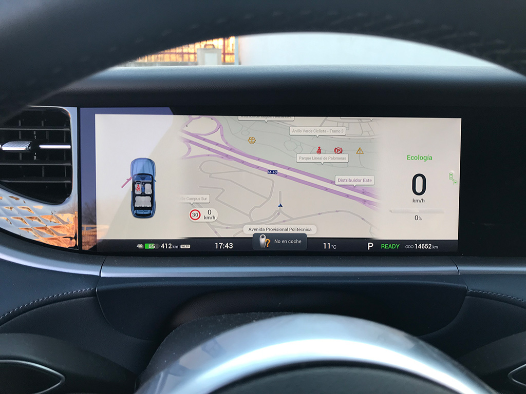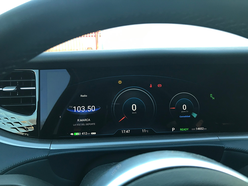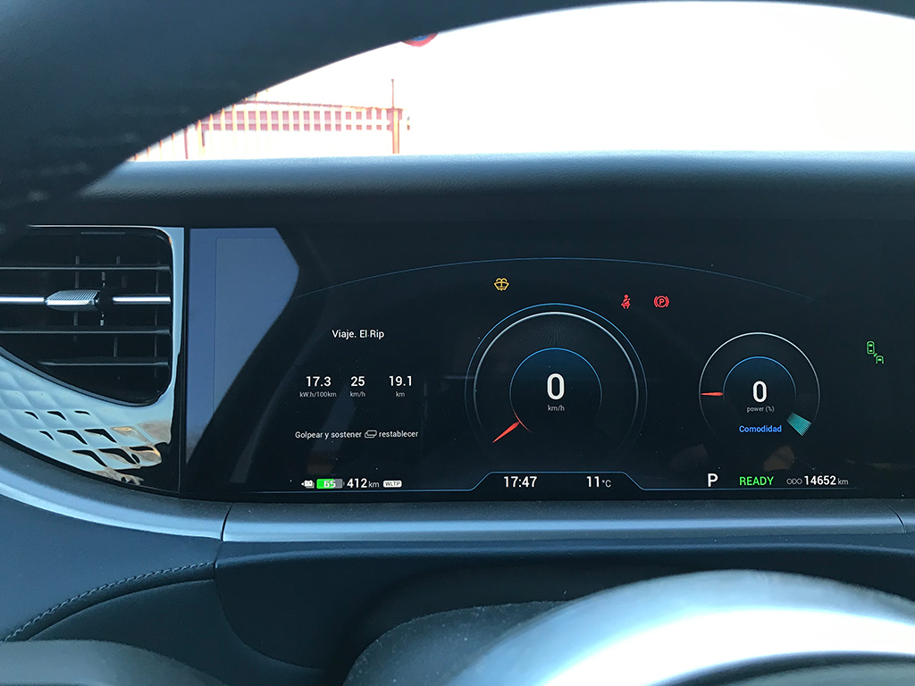 Homologa un consumo medio de 20,2 kWh/100 km que lo sitúan en una autonomía por encima de los 500 km. Nosotros hemos conseguido quedarnos en 23,5 kWh/100 km, (17,3 kWh/100 km por los túneles de calle 30 y M40) un dato que en la media, nos permite llegar a los 400 km de autonomía, sin necesidad de apurar.