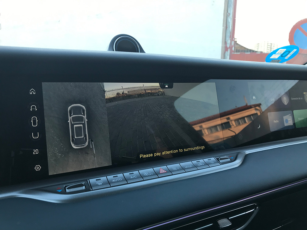 ¿Y estas cámaras? Se trata de una serie de cámaras que se encargan de vigilar la zona trasera si llevamos niños pequeños o una delantera que te monitoriza (e incluso te puedes hacer fotos). Y luego están las cámaras exteriores, que ofrecen visión frontal y trasera con posibilidad de grabación y una muy buena representación 360º. Y además también trae sistema de visión nocturna para la cámara frontal.