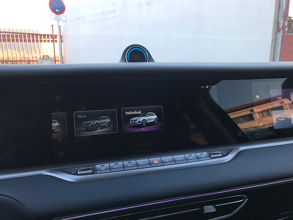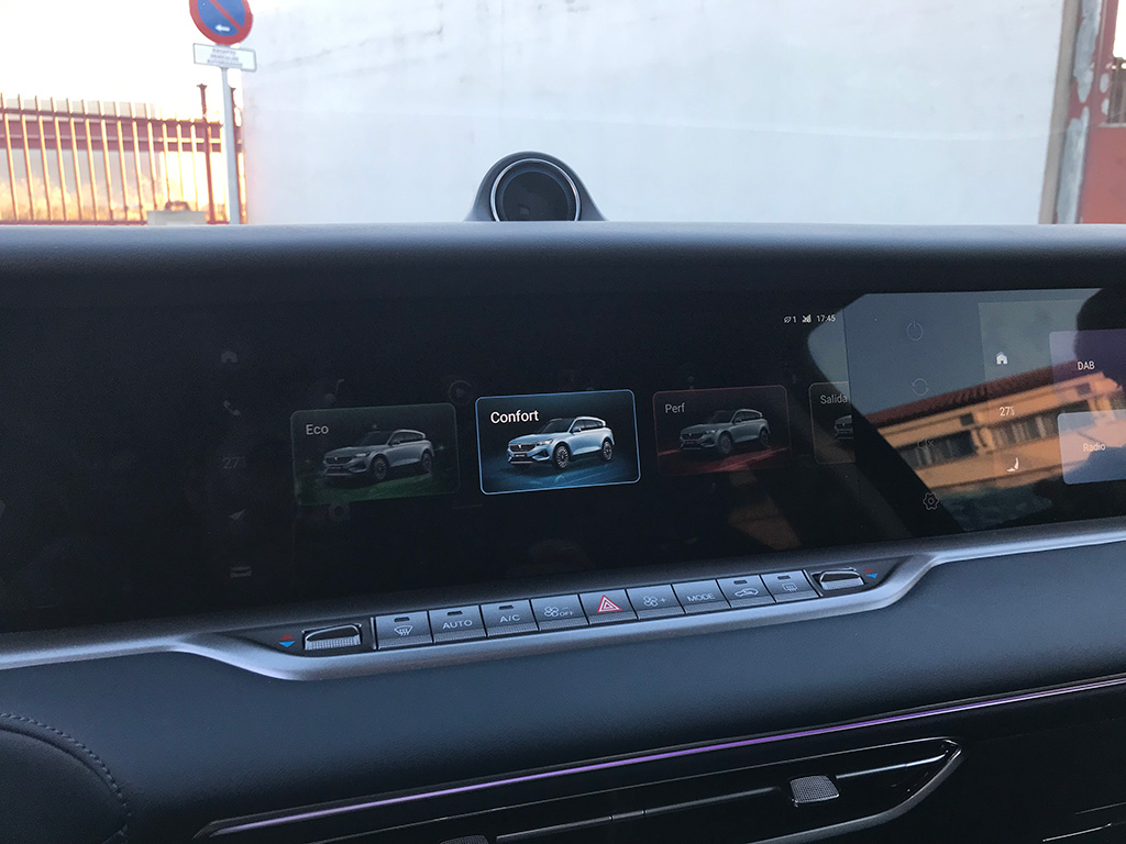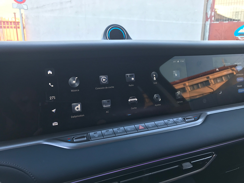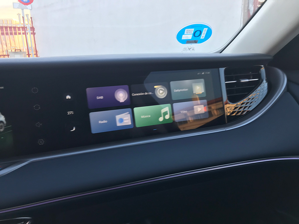 Nitidez y buenos gráficos de todas las pantallas, con un sistema multimedia sencillo de manejar. El copiloto puede manejar algunas funciones relativas al climatizador, confort de asientos, radio o las cámaras.